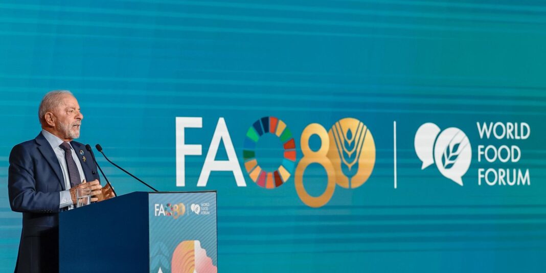 O presidente Lula afirmou nesta segunda-feira que é hora de incluir os pobres no orçamento e que não há investimento melhor para a economia global do que o combate à fome e à pobreza. Em Roma, na Itália, Lula discursou na abertura do Fórum Mundial da Alimentação, principal evento da FAO, a Organização das Nações Unidas para Alimentação e a Agricultura. O presidente destacou os 80 anos da FAO como exemplo de multilateralismo. Lula comentou a saída do Brasil do “Mapa da Fome”, que beneficiou 30 milhões de pessoas nos últimos dois anos. Para o presidente, é preciso uma política de Estado para garantir alimentos aos mais pobres.