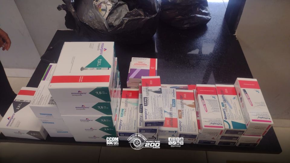 Na sacola descartada, os policiais encontraram diversas caixas com medicamentos de alto valor, incluindo insulinas, Semaglutida, Tirzepatida e outros produtos, totalizando aproximadamente R$ 47 mil em mercadorias. Um celular também foi recuperado.