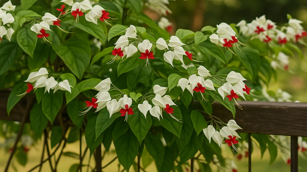 A lágrima-de-cristo (Clerodendrum thomsoniae) é uma planta de origem africana que se adaptou perfeitamente ao clima tropical do Brasil. É uma trepadeira perene, o que significa que, com os cuidados certos, ela pode florescer por longos anos, cobrindo muros, pérgolas e cercas com um visual de novela. O segredo começa na escolha do local: ela adora sol filtrado, com algumas horas de sombra leve ao longo do dia. Se exposta a sol intenso o tempo todo, suas folhas podem queimar; se colocada na sombra total, não floresce.