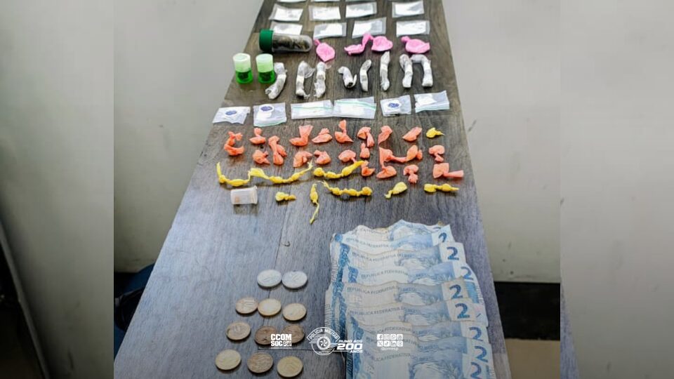 Ao todo, foram apreendidas 24 porções de cocaína, 17 porções de maconha e 40 porções de crack, totalizando 121,5 gramas, além de R$ 20 em dinheiro.