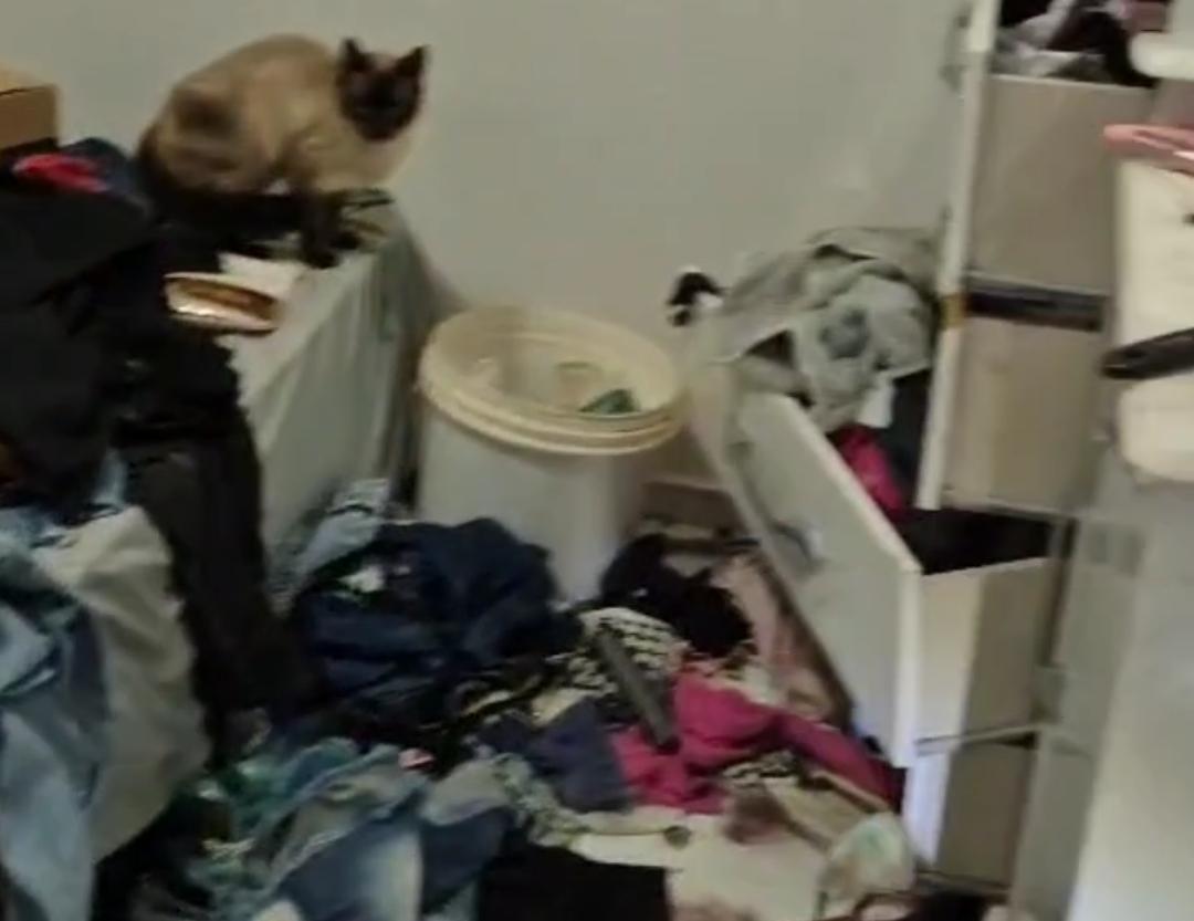 A casa apresentava condições precárias de higiene, com restos de alimentos, lixo acumulado, fraldas usadas e fezes de cães e gatos espalhadas pelos cômodos, inclusive embaixo da cama onde a criança estava. No quarto, havia ainda grande quantidade de urina no chão.