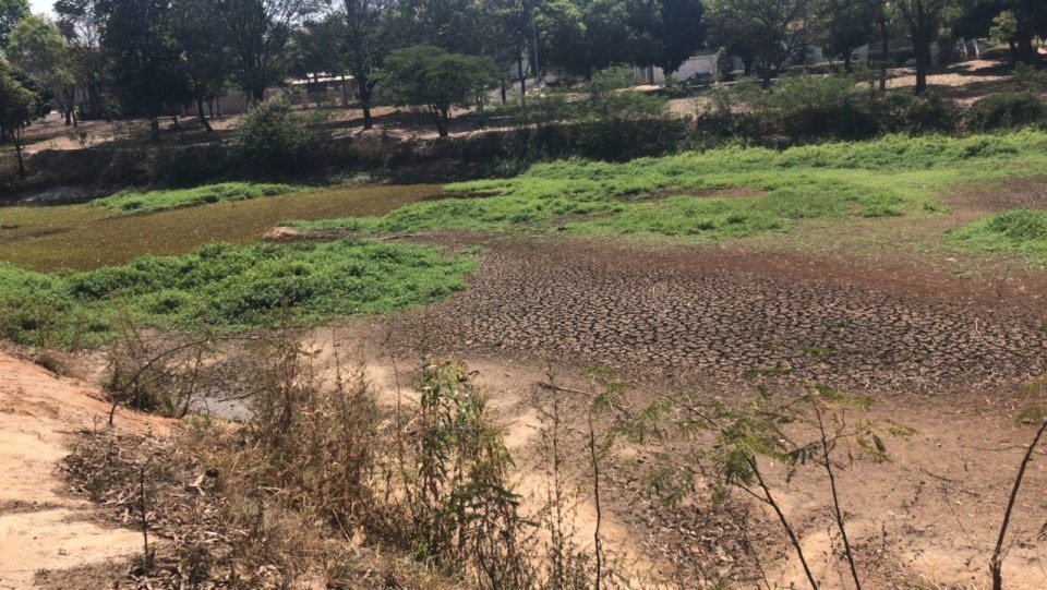 Lago do Jardim Aquarius costuma ficar completamente seco em períodos de longa estiagem (Foto: Rodrigo Viudes/Marília Notícia)