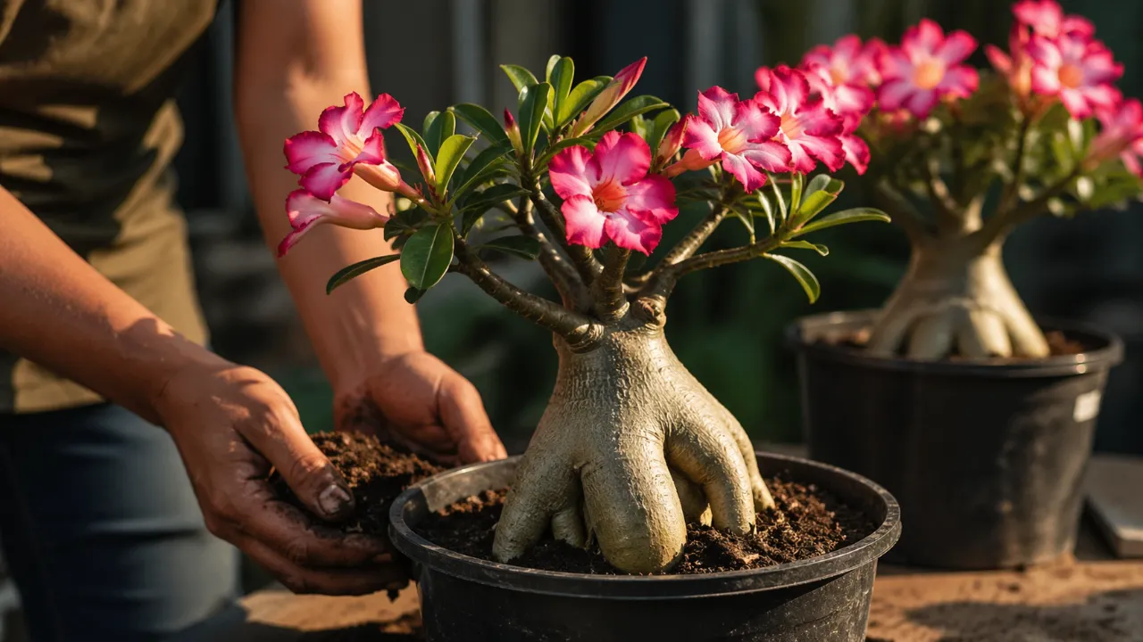 Com o tempo, a combinação de fatores corretos cria um ciclo contínuo de crescimento e floração. A rosa-do-deserto deixa de apresentar desenvolvimento irregular e passa a exibir um padrão previsível e consistente.