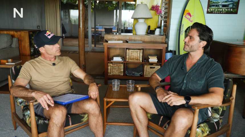 Essa busca por redefinir seus limites também o levou ao mar. Interessado por ondas grandes, ele chegou a surfar em Nazaré — um dos picos mais desafiadores do mundo — ao lado de Burle, em uma experiência que exige preparo físico, controle emocional e capacidade de lidar com o imprevisível.