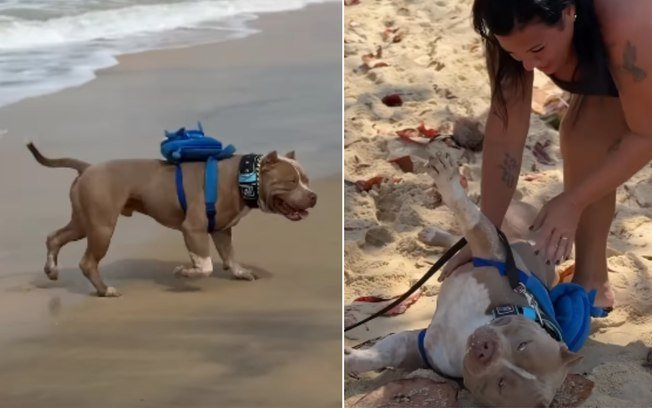 Nos comentários, os internautas entraram na brincadeira: “A mochila faz toda a diferença”, “Se eu solto minha pinscher assim na praia, vocês iam ver o caos” e “Educação vem de casa”.