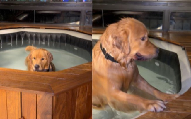 Durante uma noite de temperaturas mais baixas, o animal foi flagrado descansando dentro de uma jacuzzi, como se o local fosse sua própria cama.